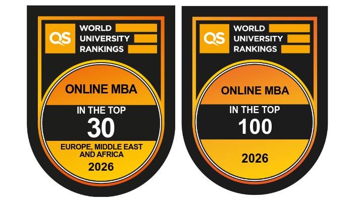 Our MBA programme is ranked in the top 30 for the Europe, Middle East and Africa region in the QS Online MBA Rankings 2026. The programme is also ranked in the top 100 for online MBA programmes globally.